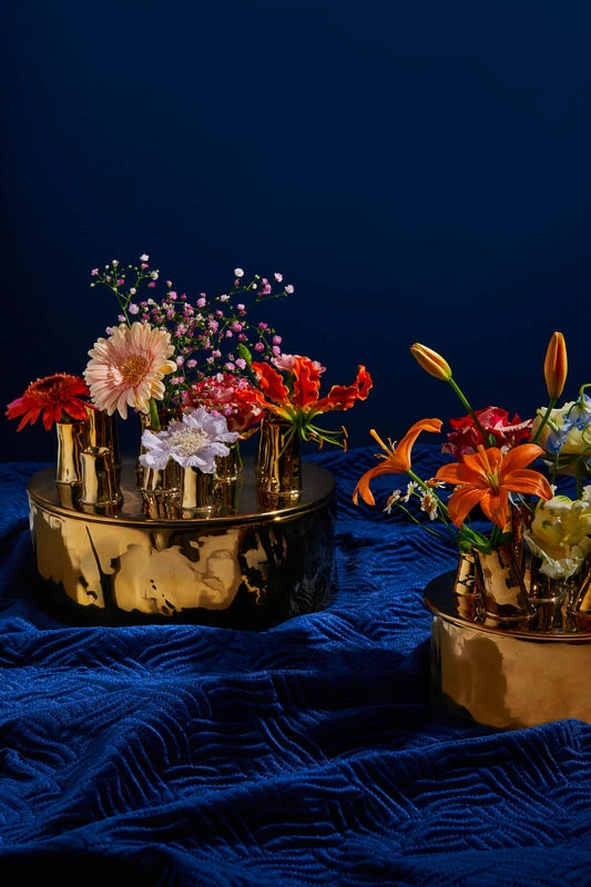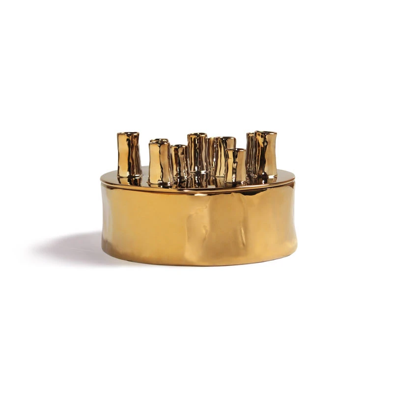 Dutch ceramic artist Anouk Kramer created this stunning porcelain vase. The modernity that emanates from this strange tree shape is harmoniously combined with the baroque style of the golden finish. An extremely distinguished and deliciously quirky hybrid aesthetic! The multiple openings allow each flower to be highlighted. Thus arranged, a bouquet takes on a graceful lightness, almost surreal. Your composition takes on different shapes depending on the number of flowers and their arrangement. This vase consists of two separable parts: a container surmounted by an upper disc with built-in bud vases. The two parts come apart for easy washing. Your composition takes on different shapes depending on the number of flowers and their arrangement.