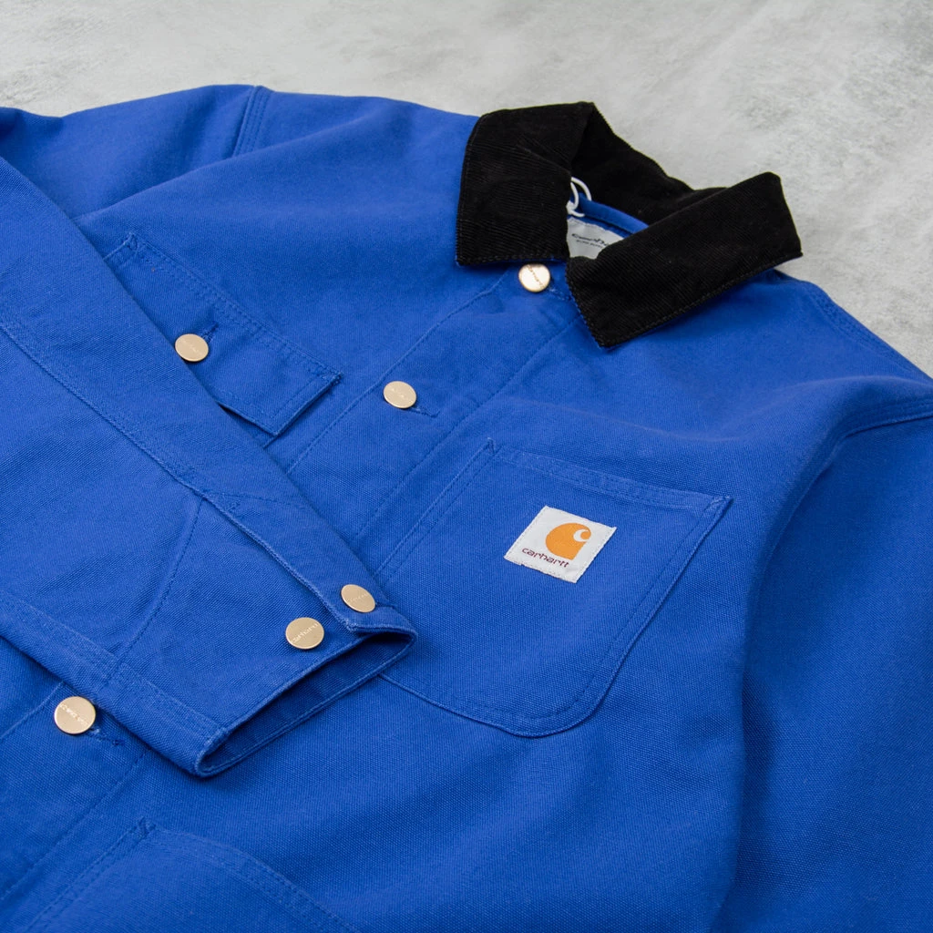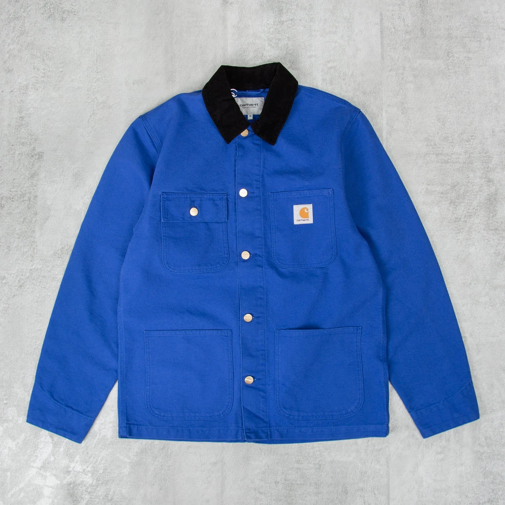 The Carhartt Michigan Chore Coat is made from 100% Organic Cotton ‘Dearborn’ Canvas, 12 oz. It is unlined & features the classic branded square label on the chest pocket.