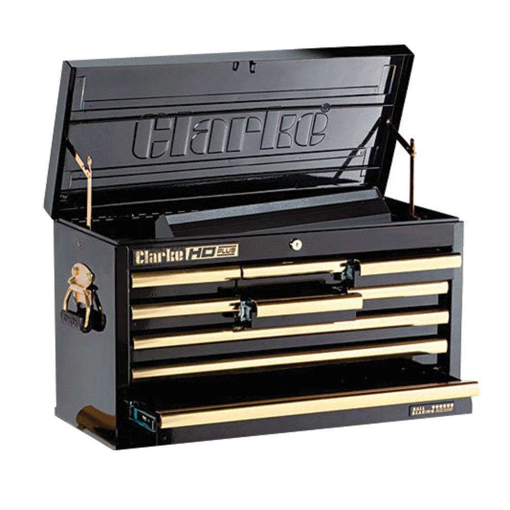 For the ultimate in terms of tool storage and at a very competitive price, this top of the range Heavy Duty Plus nine drawer tool chest displays super quality features from every angle. Includes lift out tote tray for extra tool & fastener storage & a full width piano hinge that’s welded & riveted onto the lid. This tool chest is truly unbeatable value for money!