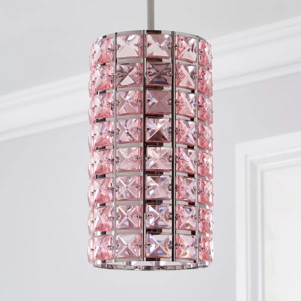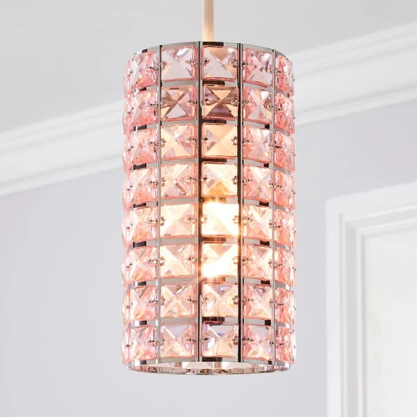 Bring a splash of luxe styling to your home with the glamorous Kiara easy fit pendant shade. This stunning shade features stunning pale pink acrylic crystals, paired with chrome finished details for a modern touch.
