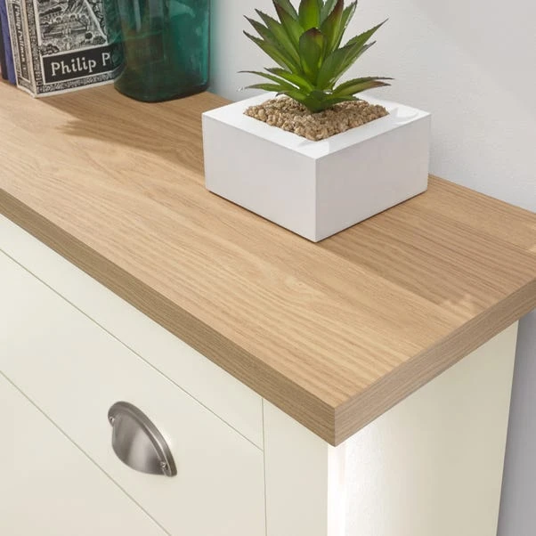 The perfect mix of practicality and style, this Lancaster Cream Shoe Drop is complete with two shoe rack spaces and is perfect for neatly storing away footwear. Available in either a white or grey colourway, and featuring a contrasting oak effect top, this product is as stylish as it is practical.