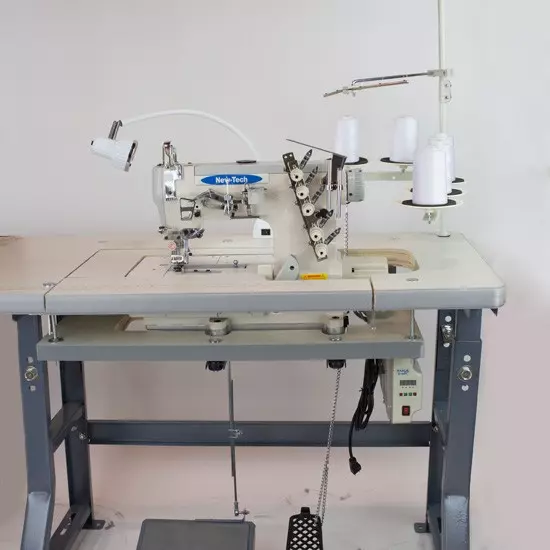 New-Tech GC-562-01DA 3-Needle 5-Thread Direct Drive Coverstitch Industrial Sewing Machine With Table and Built-in Direct Drive Servo Motor