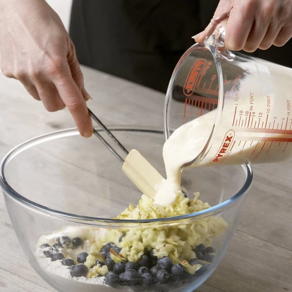 Crafted from durable borosilicate glass, this durable Pyrex glass includes a measuring jug featuring a 0.5 litre capacity, is safe to use in the dishwasher and comes complete with a 10-year guarantee.