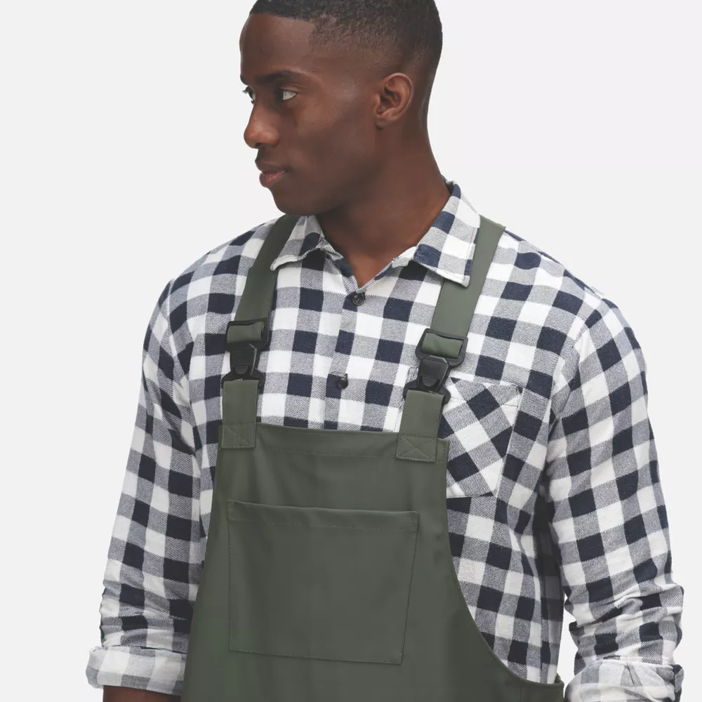 Made from waterproof and windproof fabric with a PU coating. Ideal for farm work, gardening and manual labour. Lightweight knit fabric to back offers extra comfort. Features adjustable braces and waist.