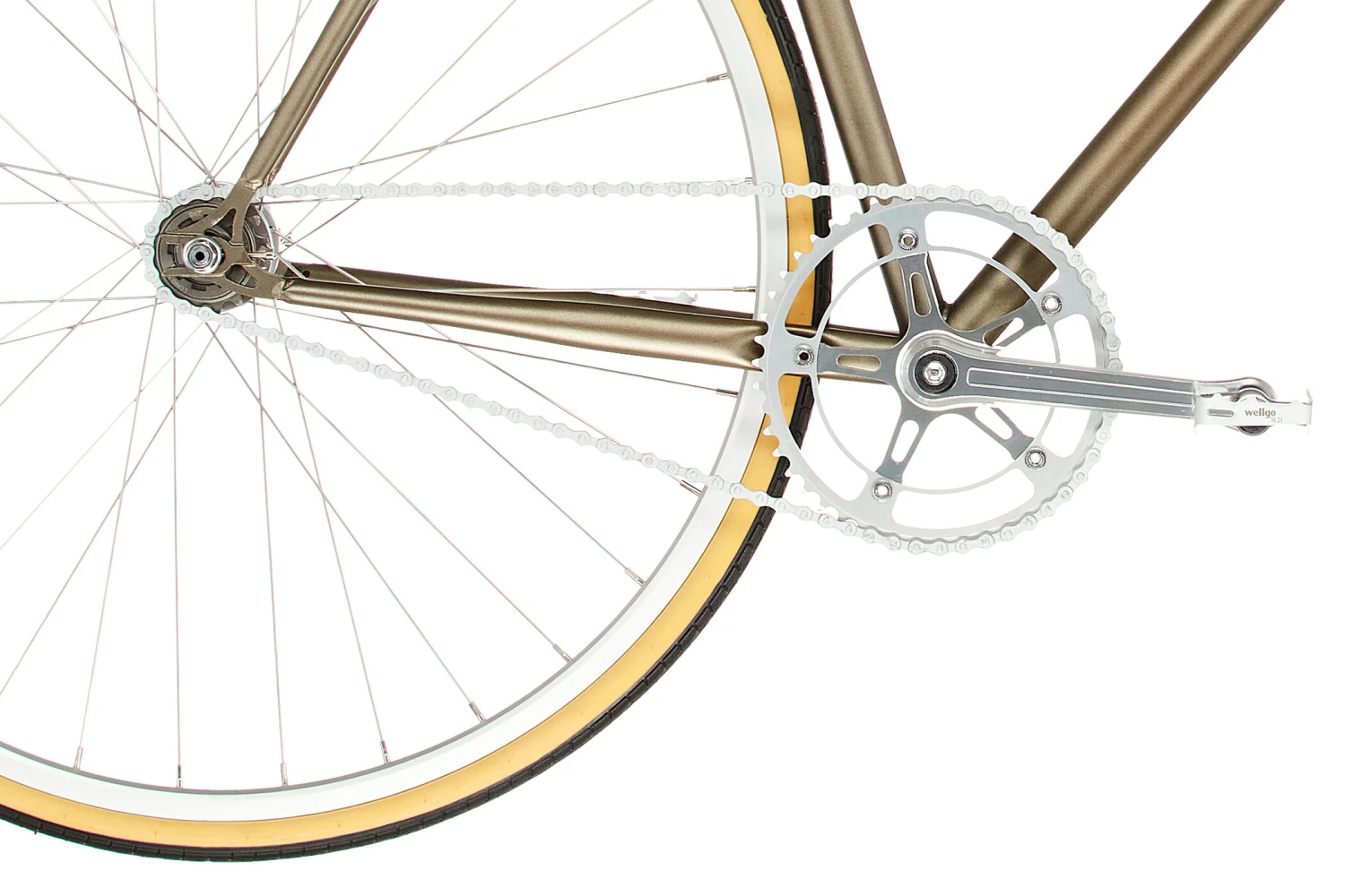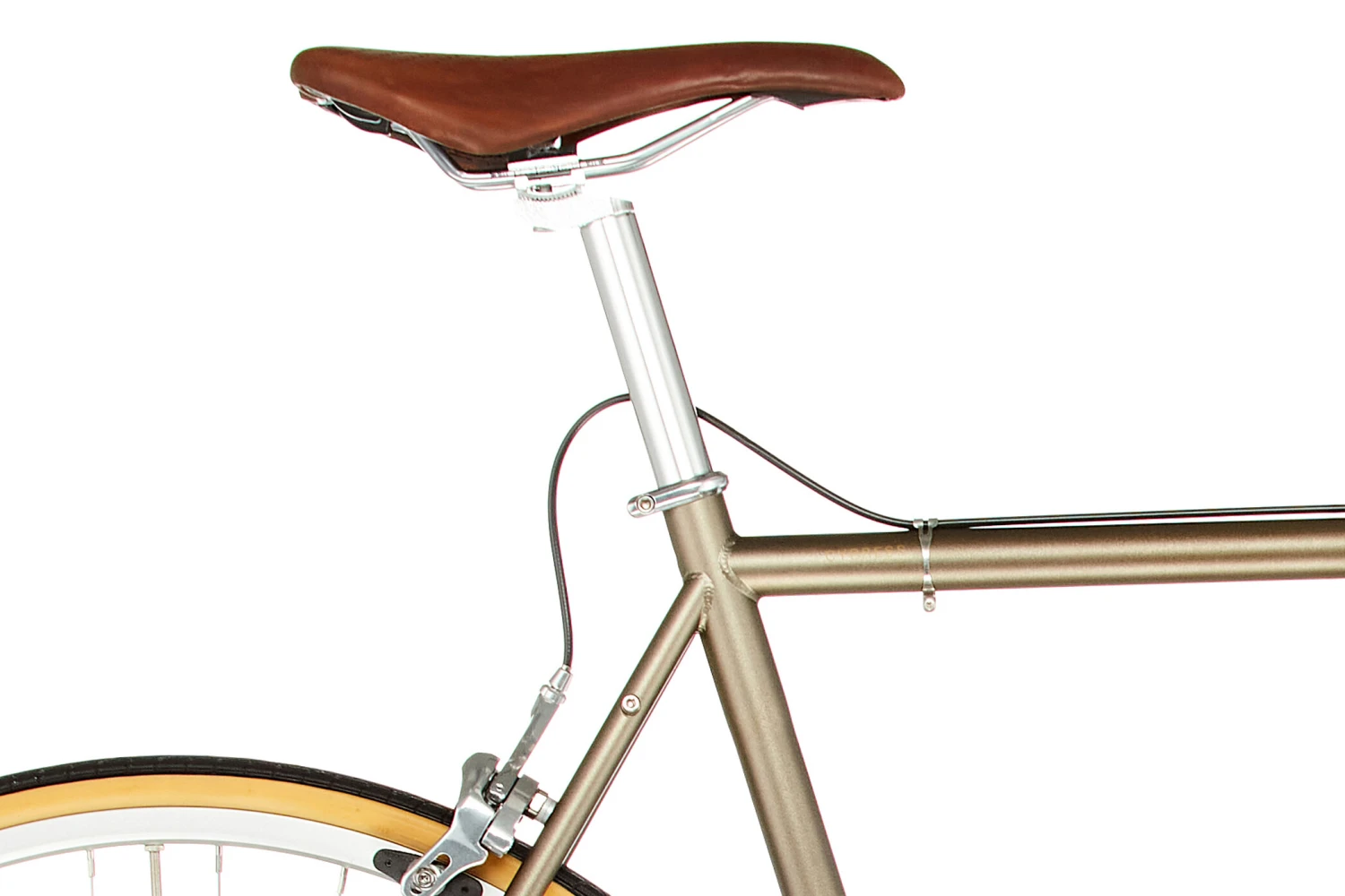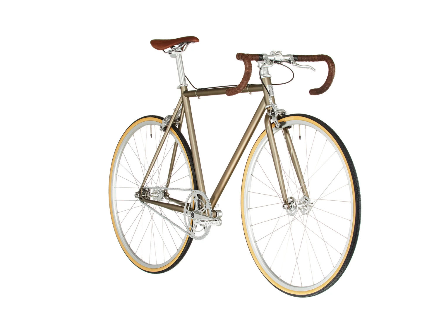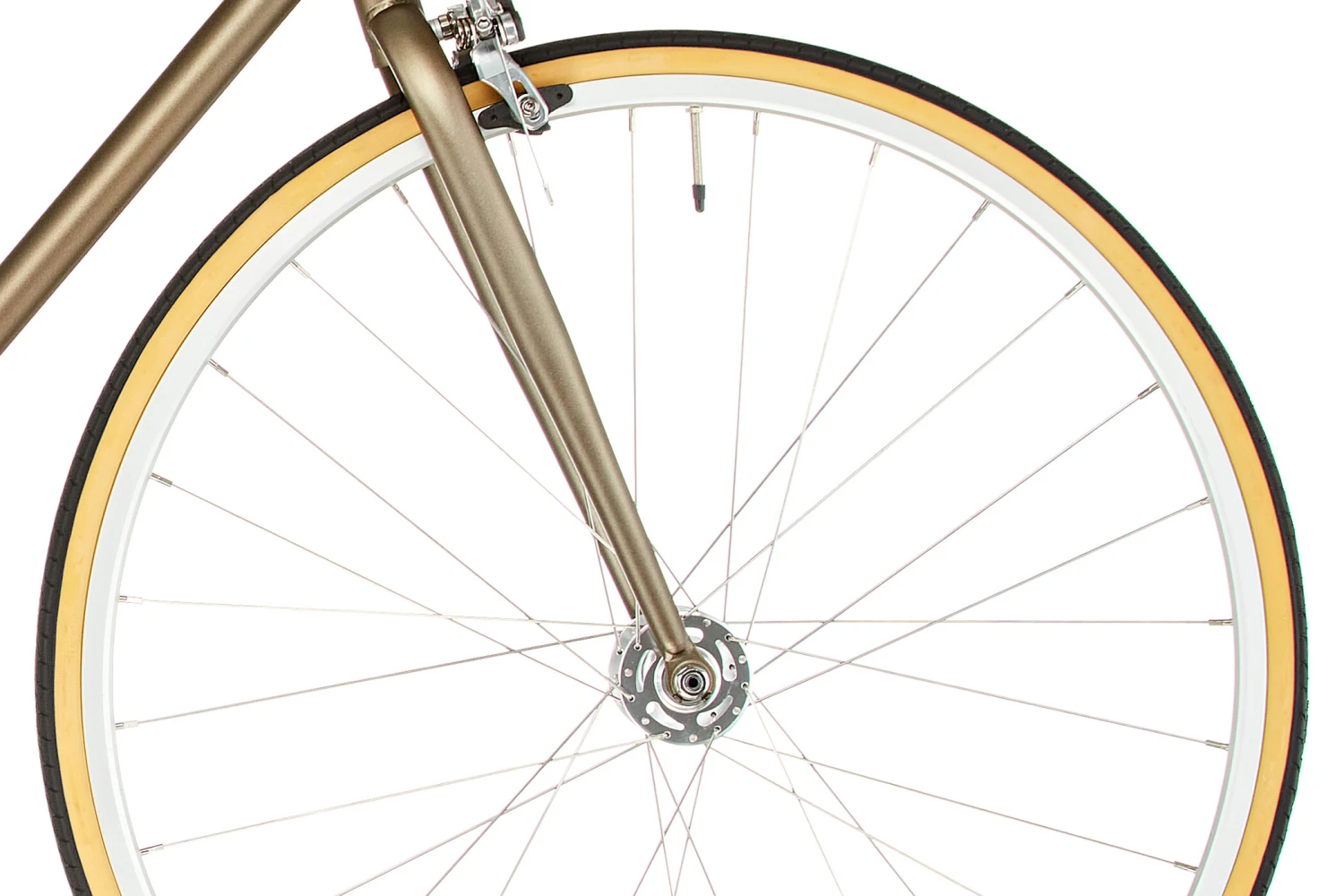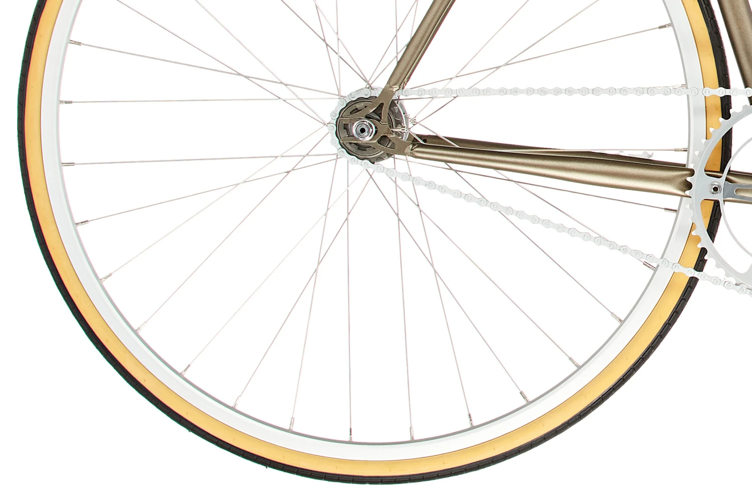 CYPRESS has a flip-flop hub for switching quickly and conveniently between fixed gear and single speed operation. In fixed-gear mode, the sprocket has no freewheel, meaning when the back wheel turns, your legs go with. If you want to feel really connected to the bike, this is the way to do it. If you prefer a more relaxed ride where you can coast down hills like on any other bike, simply flip the back wheel over and use the freewheel sprocket.