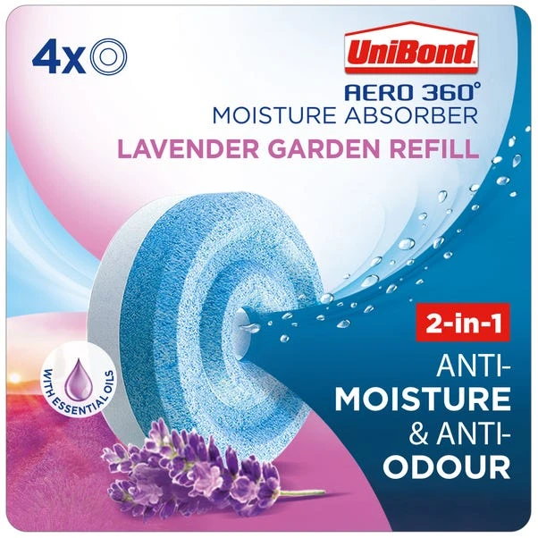 - Moisture & Odour control – The AERO 360° moisture absorber and the UniBond AERO 360 refill tabs offer a simple solution to effectively absorb excess moisture and to neutralise bad smells in your home.