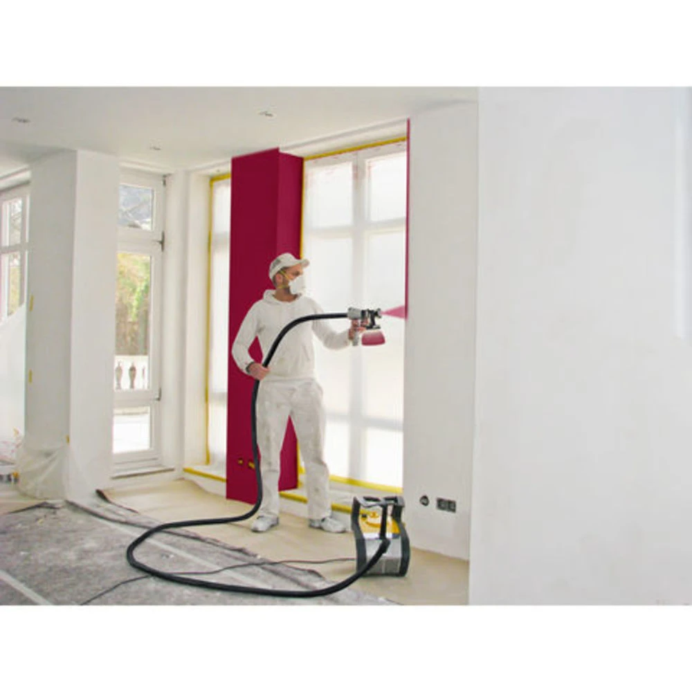 This paint sprayer has all the advantages of a HVLP paint sprayer but its increased power gives the Wagner XVLP a 60% greater airflow and 30% greater surface coverage. This makes the unit easy to use for all sorts of (high viscosity) lacquers, stains, dispersion and emulsion paints.